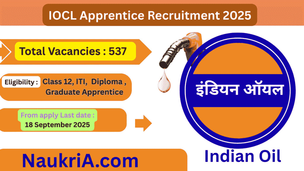 IOCL Indian Oil Corporation Limited (IOCL) has announced 537 Apprentice posts under the Pipelines Division. This is an excellent opportunity for candidates with Class 12, ITI, Diploma, or Graduate qualifications. The last date to apply online is 18 September 2025.